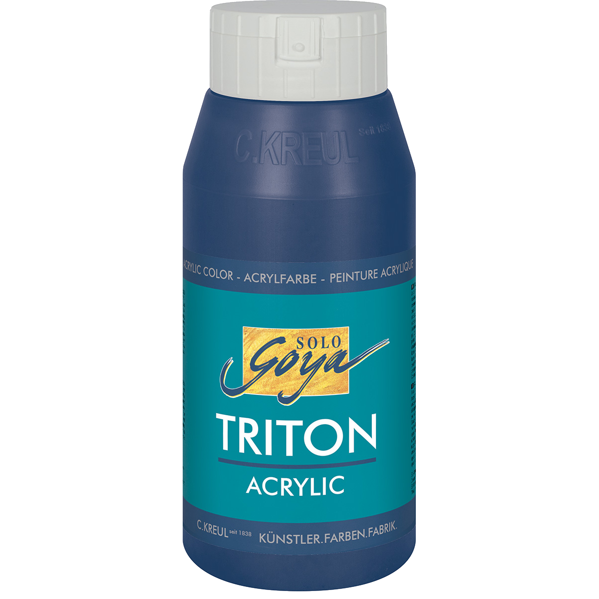 Umelecká akrylová farba SOLO GOYA Triton Acrylic v študijnej kvalite je univerzálna, veľmi vhodná na techniku glazúry a veľké plošné vzory. Ľahko sa nanáša a rýchlo schne. Tekutú konzistenciu a hlboký matný efekt ocenia umelci pri základnom nátere a veľkoplošných vzoroch pozadia. Akrylová farba pre umelcov od spoločnosti KREUL obsahuje farebné spektrum 50 farebne zladených odtieňov, ako aj štyri fluorescenčné odtiene, ktoré svietia pod čiernym svetlom. Umelecké akadémie, scénografi a umelci, ktorí maľujú veľké plochy, potvrdzujú vysokú výťažnosť a používajú ju na projekty v interiéri aj exteriéri.
