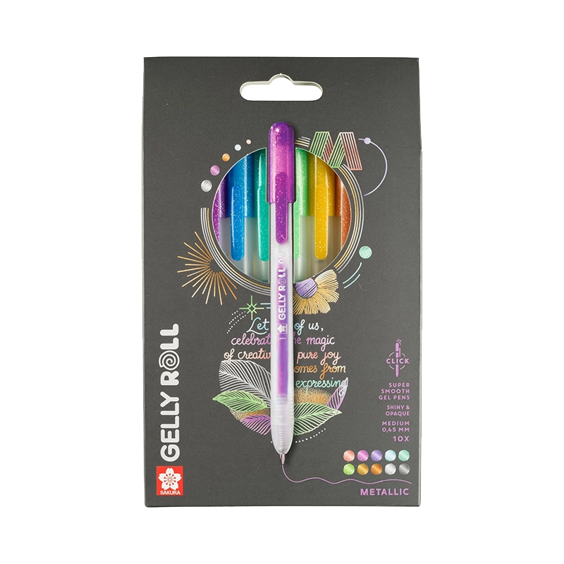 Objavte plynulé a sýte písanie s výsuvnými gélovými perami Gelly Roll. Tieto perá sú ideálne pre všetkých milovníkov písania – poskytujú rovnomerný tok atramentu pre bezchybný zážitok. Vďaka výsuvnému dizajnu môžete začať tvoriť okamžite. Gelly Roll Metallic využíva nepriehľadný a lesklý gélový atrament, ktorý rýchlo schne a vytvára ohromujúci farebný efekt – skvele vynikne na svetlom aj tmavom podklade. Či už si píšete denník, kreslíte si, alebo sa púšťate do umeleckého projektu, môžete sa spoľahnúť na precízny hrot pera, ktorý vytvára ostré a čisté línie.
